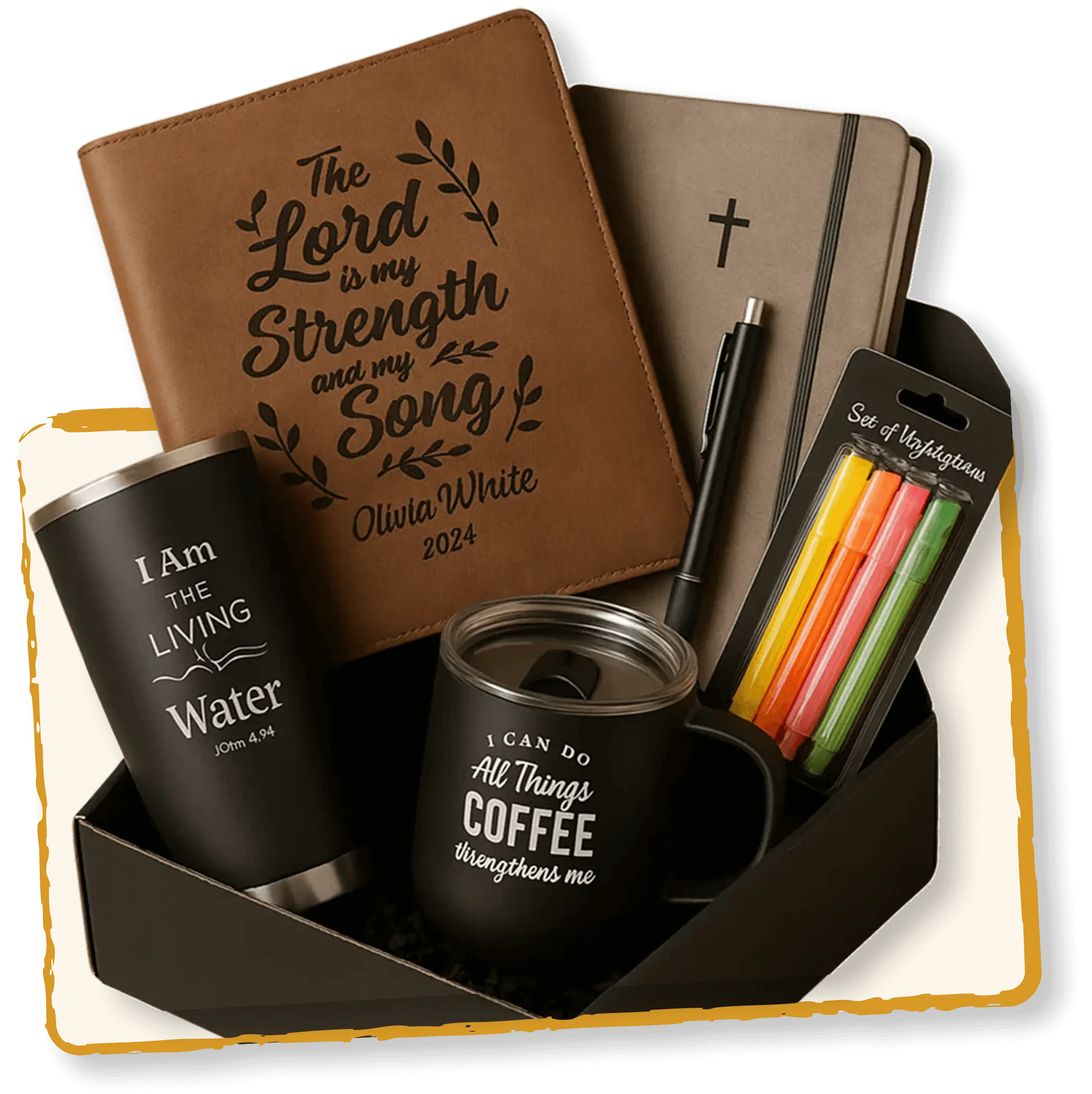 From personalized Bibles to handcrafted journals, we design each piece with faith, care, and craftsmanship. Every detail from engraving to packaging is meant to make your gift as special as the person receiving it.