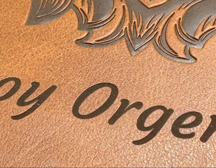 - Rich brown faux leather cover