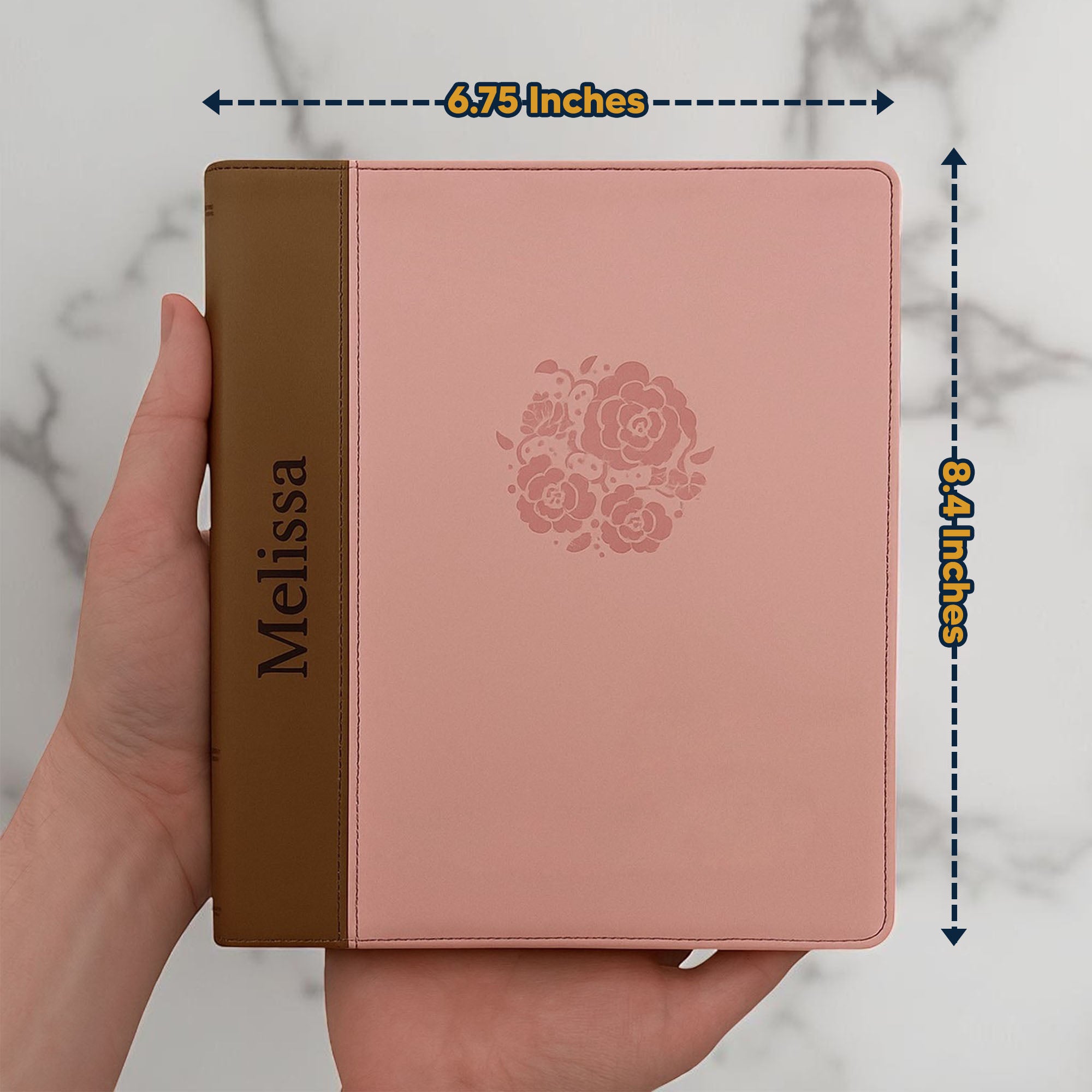NIV Women's Journaling Holy Bible Faux Leather Custom Name Medium Print | Pink and Brown
