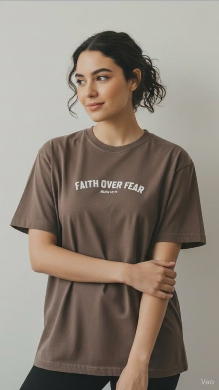 A timeless essential with a meaningful touch. This relaxed-fit tee features a minimalist Faith Over Fear printed at the chest — a simple yet powerful symbol of faith that stands out without saying a word. Designed to inspire quiet confidence, it’s perfect for daily wear, worship gatherings, or as a thoughtful gift.