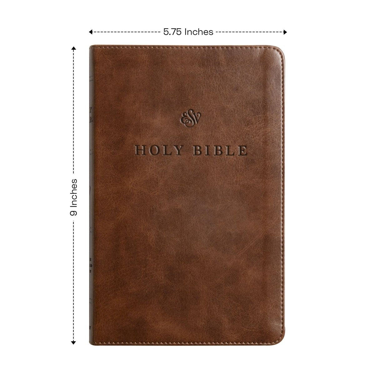 This Personalized Premium ESV Bible combines warm, natural elegance with practical functionality, featuring your name beautifully engraved in dark brown on a rich brown faux leather cover with refined stitched edges The personalization creates a meaningful connection to scripture that will be cherished for years to come The English Standard Version translation provides exceptional accuracy while maintaining beautiful, readable prose presented in a double-column format with line matched layout At 9" x 575" with just 1" thickness and weighing only 1 lb 1 oz, this Bible feels wonderful in your hands while remaining perfectly portable for church, travel, or daily devotions Crafted with 978 thin pages and innovative lay flat binding, this Bible opens effortlessly and stays open for comfortable reading without strain The included ribbon marker ensures you never lose your place during study or worship Perfect for confirmations, graduations, or personal devotional use, this personalized Bible makes a meaningful gift that encourages daily engagement with God's word The combination of premium craftsmanship, classic design, and thoughtful personalization creates a Bible that will be treasured and used regularly for spiritual growth and inspiration