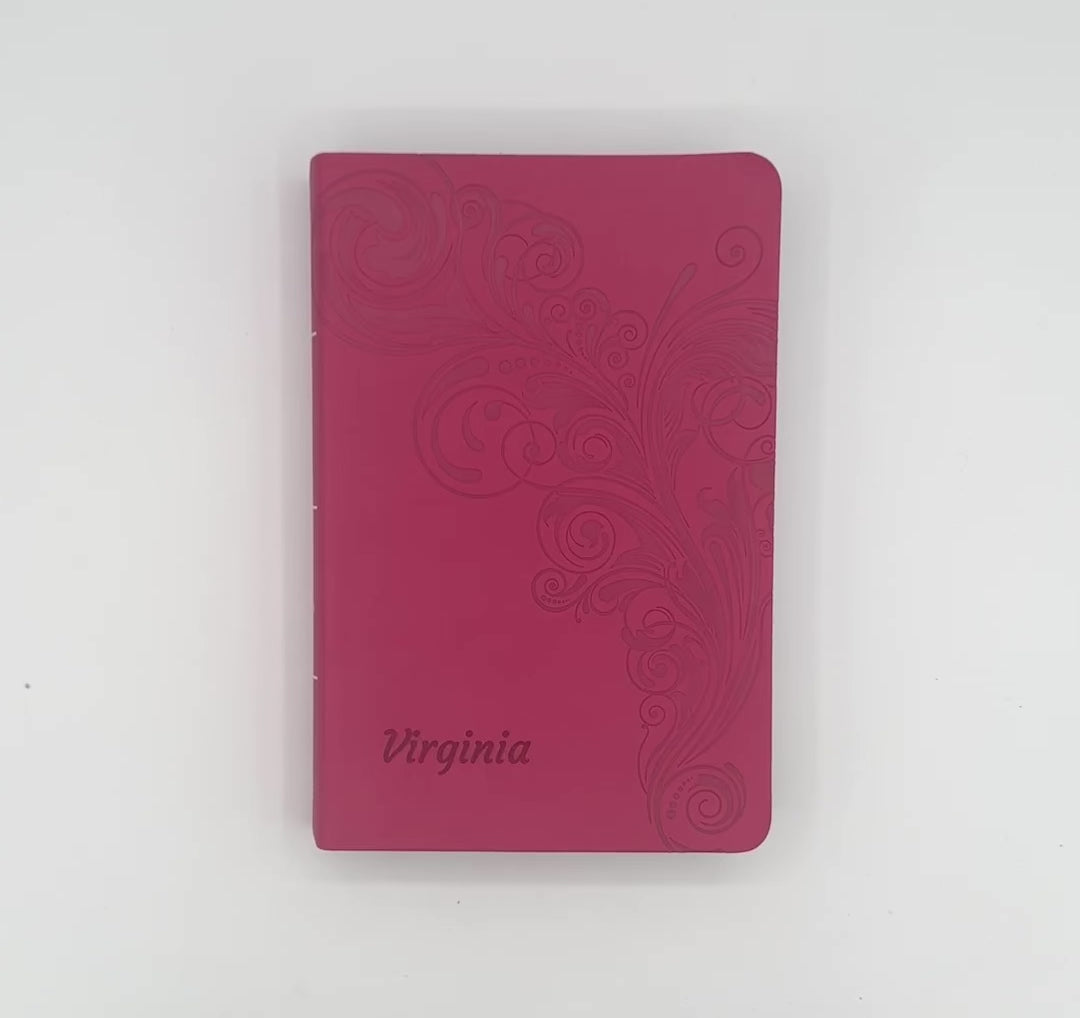 PERSONALIZED: Make this Faux Leather Large Print KJV Reference Bible ideal for you with a burnt pink personalization option, featuring your name (up to 15 characters) elegantly placed at the lower left corner of the cover