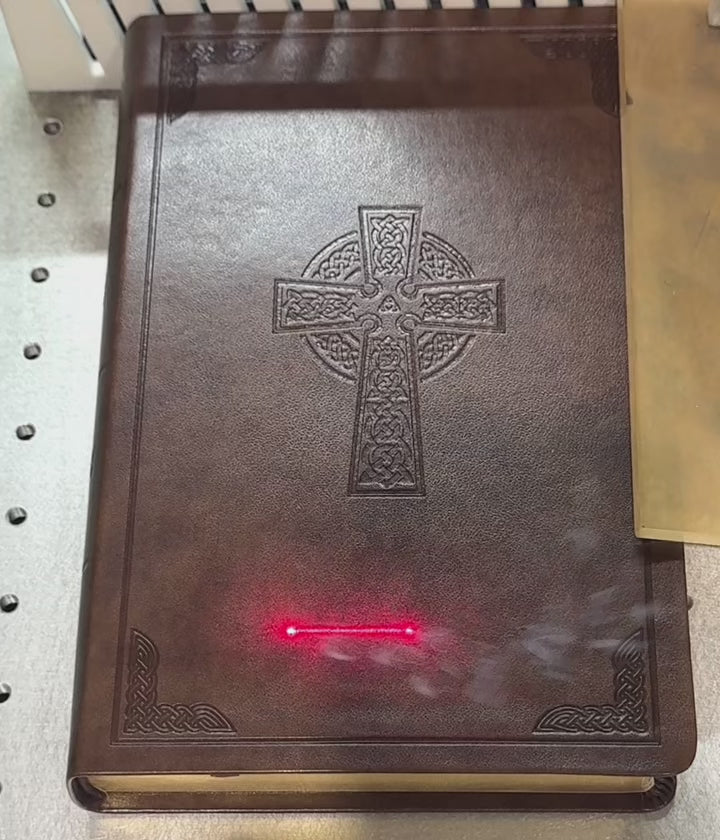 Personalized CSB Reference Bible Faux Leather Large Print Size with Cross Celtic Design Brown | Shepherds Shelf - Shepherds Shelf