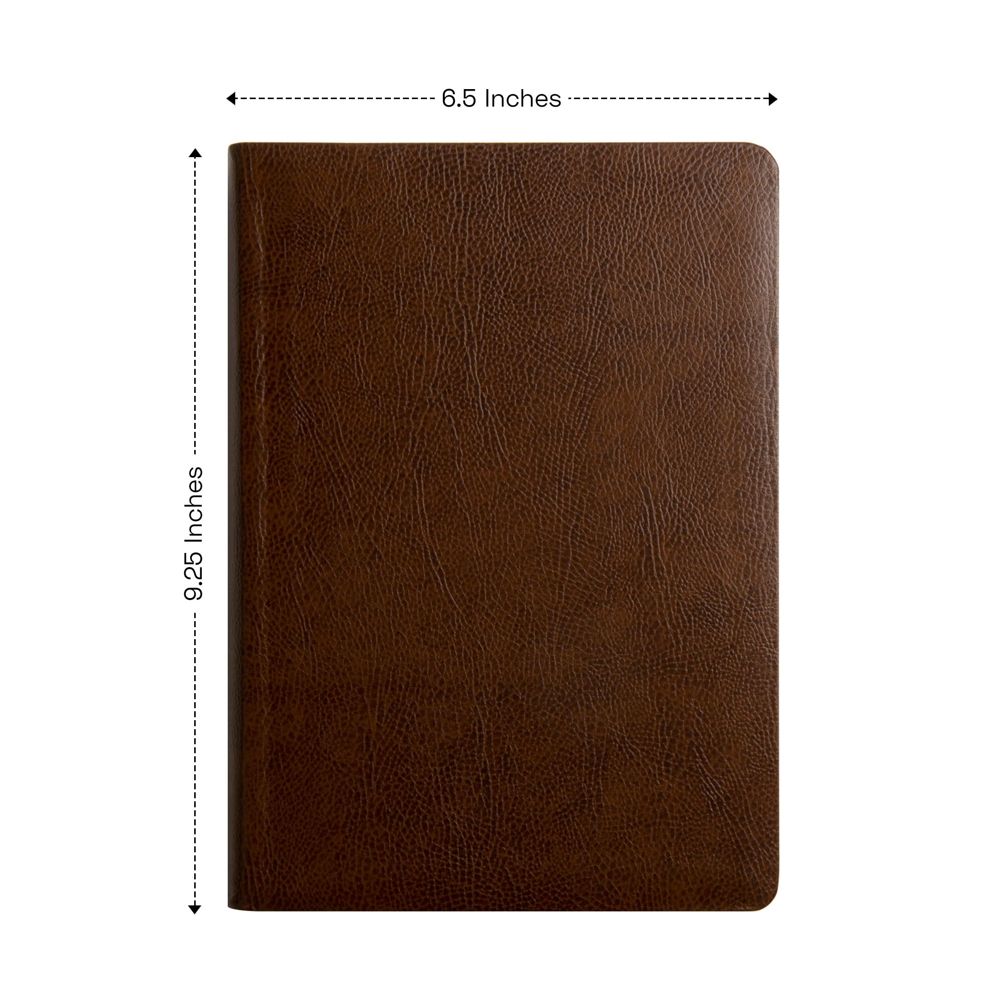 FORMAT: Encased in rich brown bonded leather, the Bible exudes elegance and durability Its spacious 65" x 925" size, along with a comfortable medium print 95-point type, ensures a pleasurable reading experience