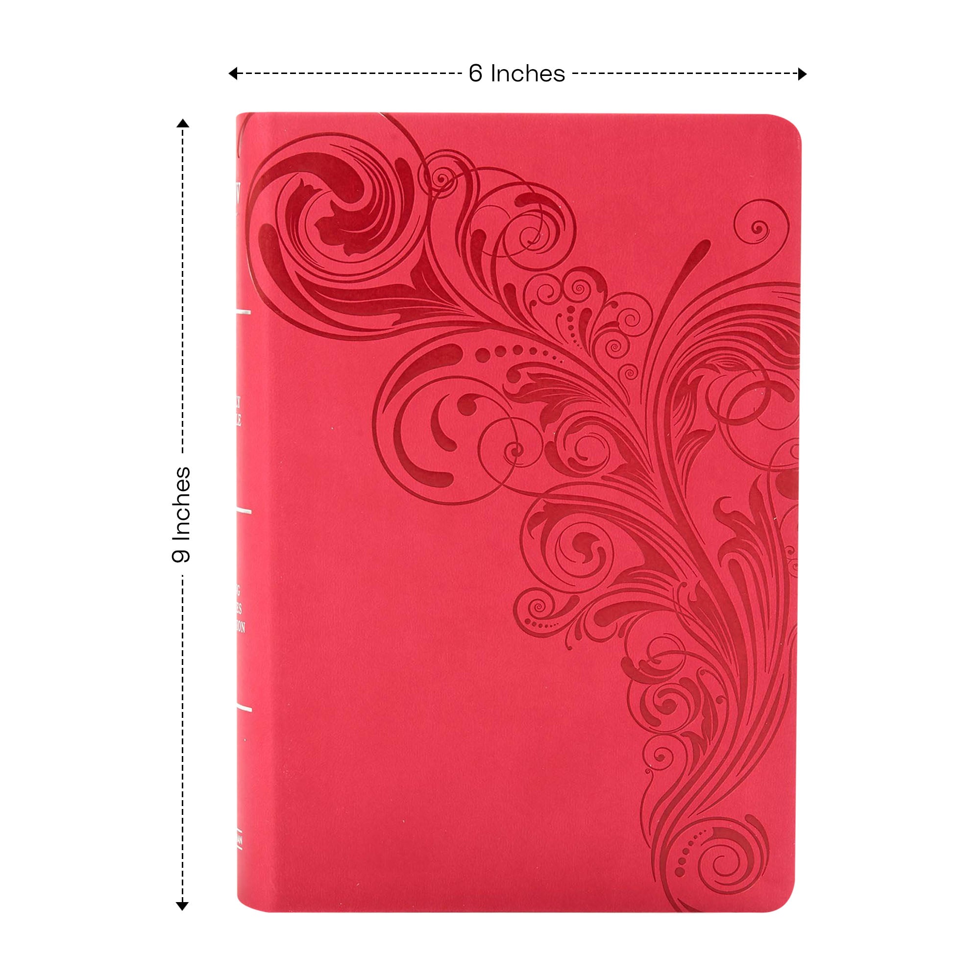 PERSONALIZED: Make this Faux Leather Large Print KJV Reference Bible ideal for you with a burnt pink personalization option, featuring your name (up to 15 characters) elegantly placed at the lower left corner of the cover