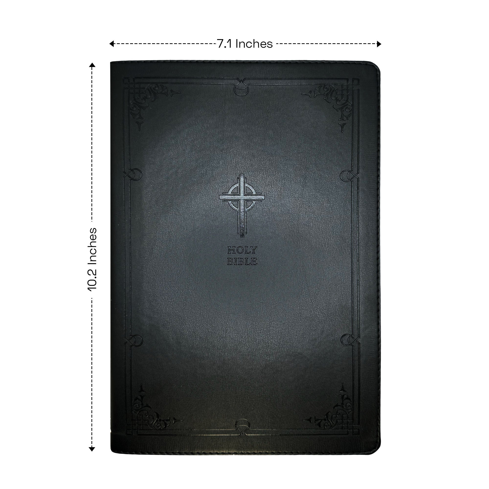 PERSONALIZED: Personalize the black faux leather cover with up to 3 lines of text. You can add our pre made Icons, your name, a date, or a special message to make this Bible uniquely yours or an ideal gift for Catholic and religious events. The custom engraving color is black.