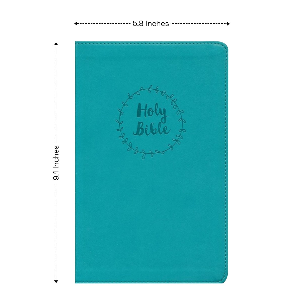 Readable & Durable: Measures approx 9" x 6" bound in a luxurious FAUX LEATHER teal cover, 2 Column Format, 1077 THIN Bible pages and a MEDIUM 9 point font size