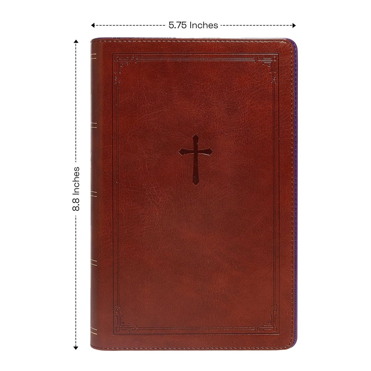 NKJV Brown Standard Size Holy Bible Large Print | Lay Flat Cross