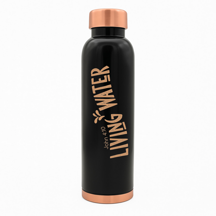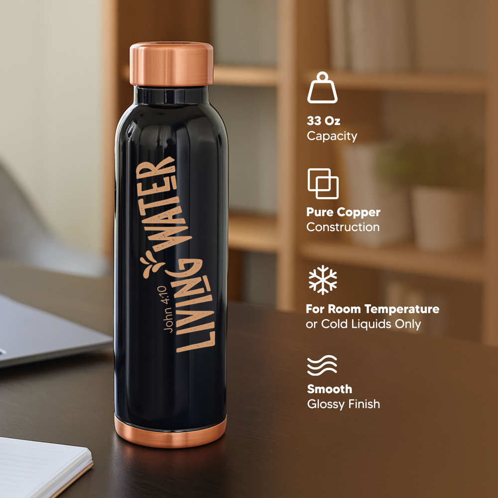 Transform your daily hydration with this premium handcrafted pure copper water bottle, expertly personalized with your name and Living Water from John 4:10 bible verse and scripture. Each bottle features a stunning glossy finish and artisanal construction that ensures every piece is uniquely yours, with subtle imperfections that celebrate authentic craftsmanship rather than mass production.