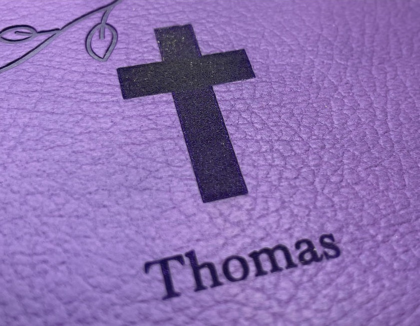 Our NKJV Bible with a faux leather cover can be engraved with custom name/text, making it a unique and thoughtful religious gift.