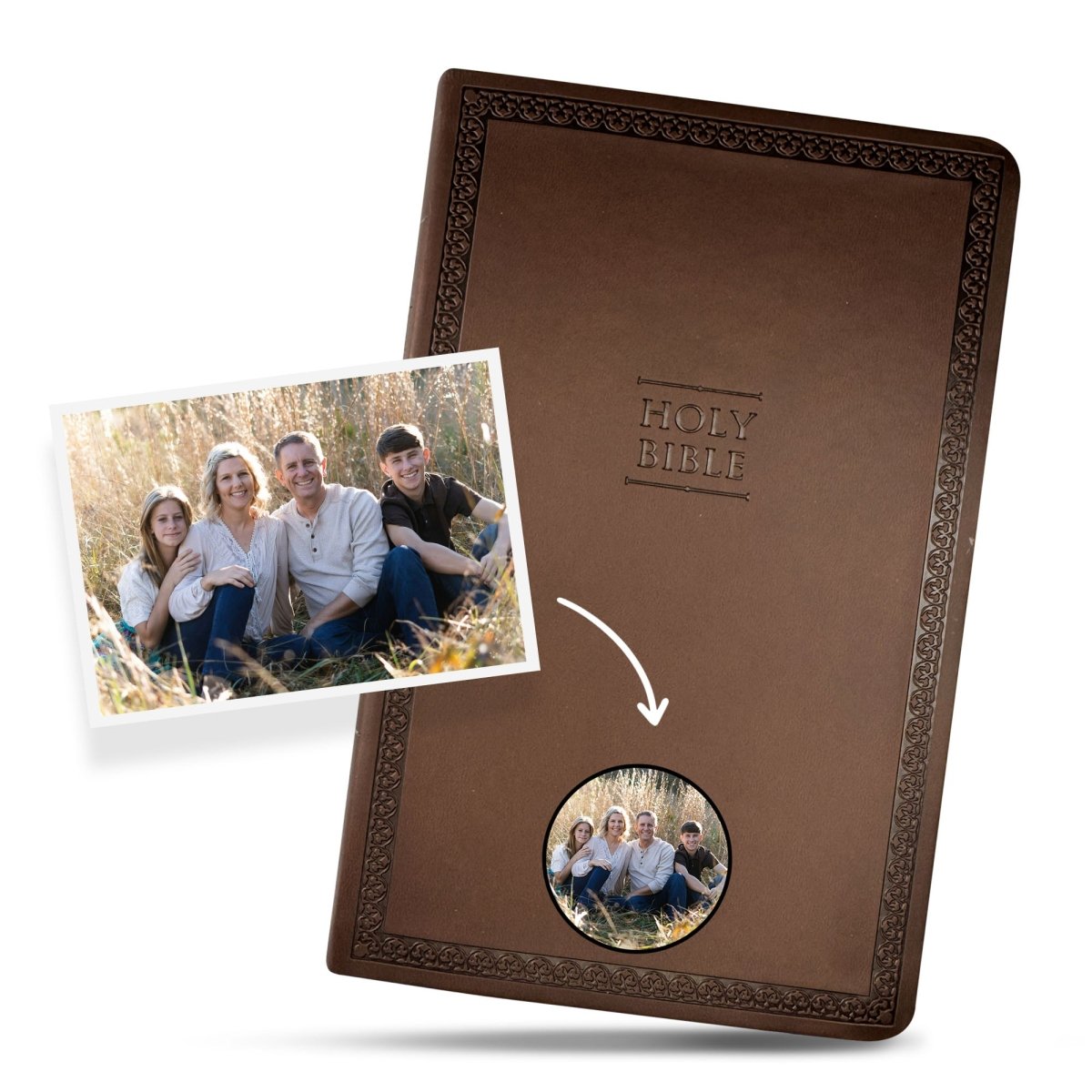 PERSONALIZATION: Personalize this Faux Leather NIV Bible with a special memory or note, and choose from our pre-made Icons or add a Name and Date, all Debossed and Engraved on the brown cover